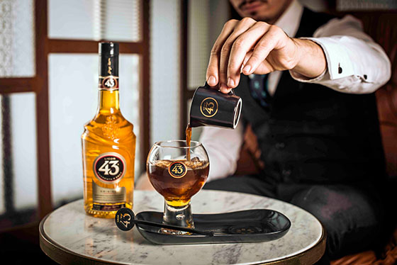 Zur Kaffeezeit darf es ein kleiner Schwarzer sein. Auch hier kann man mit wenig Aufwand verschiedene Arrangements anbieten. Für einen Espresso 43 beispielsweise füllt man ein Glas zur Hälfte mit Eiswürfeln und gibt 50 Milliliter des Likörs darüber. Diesen serviert man gemeinsam mit einer separaten Tasse heißem Espresso. Der Gast gibt kurz vor dem Trinken den Espresso selbst über den Likör und rührt fix um.