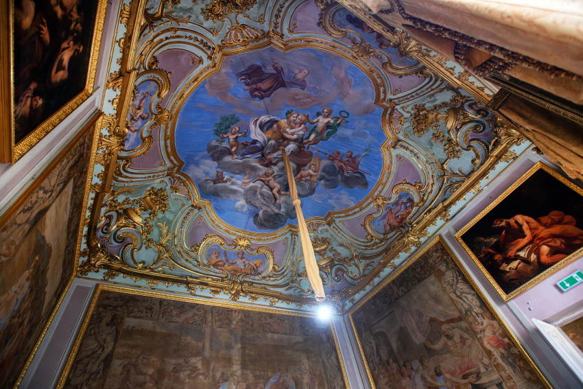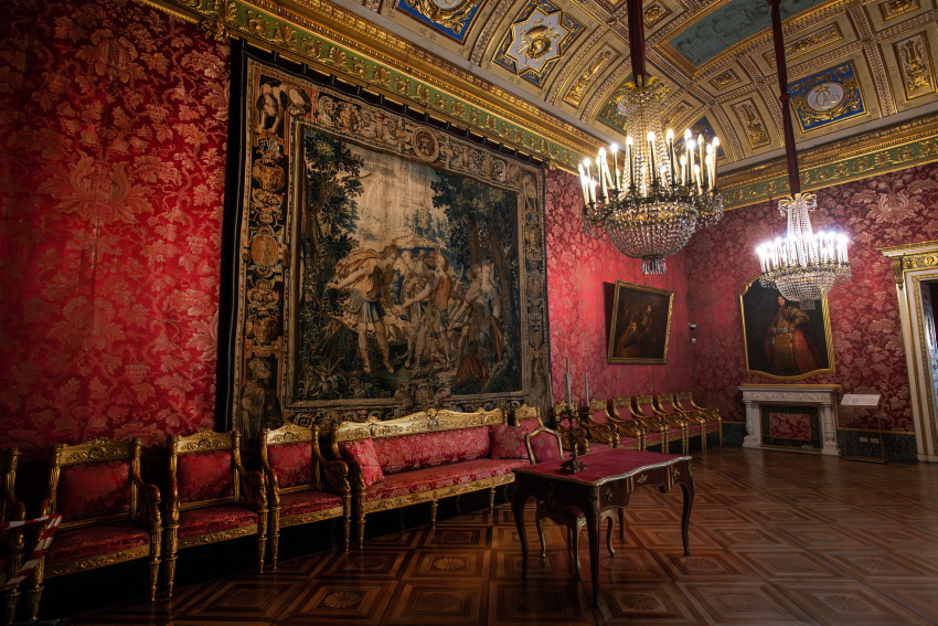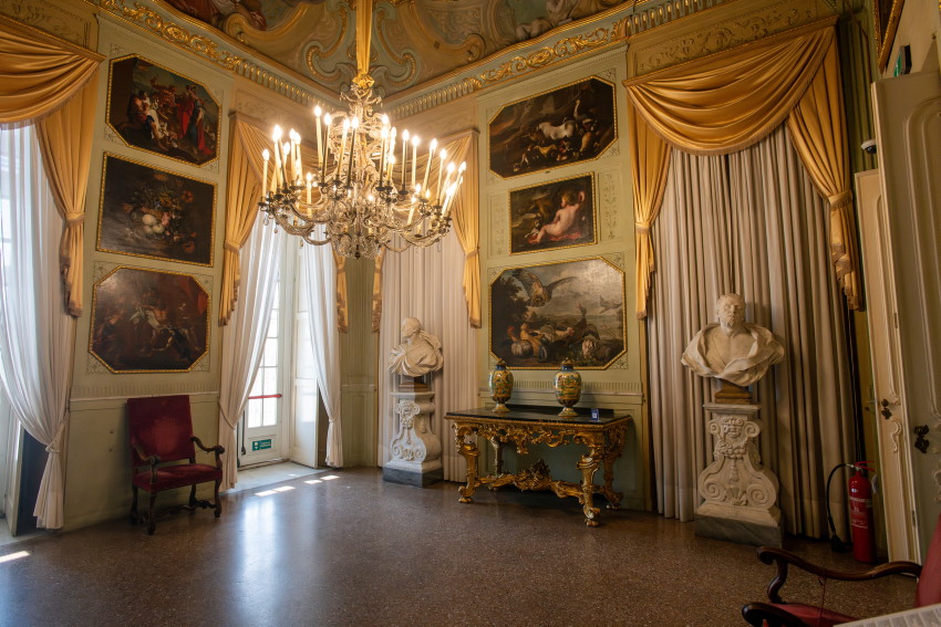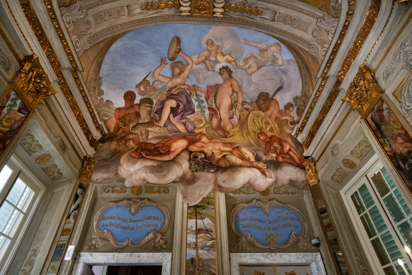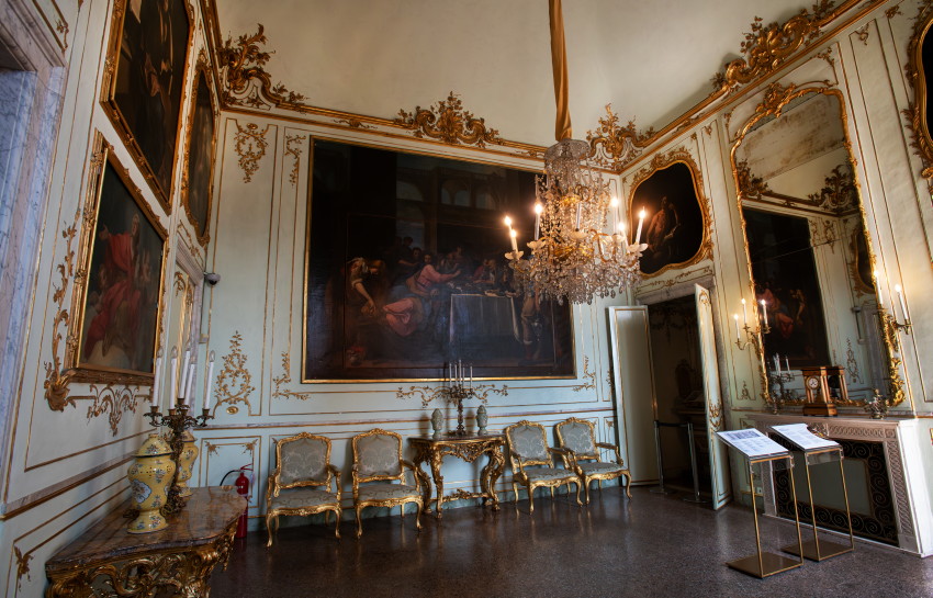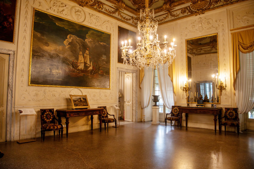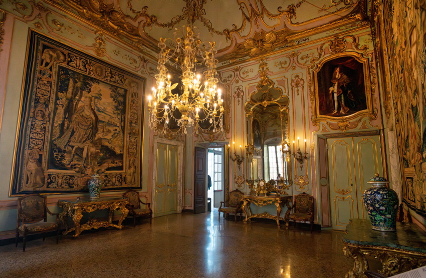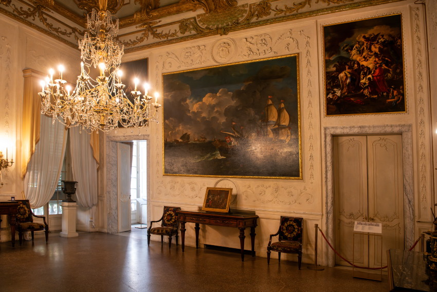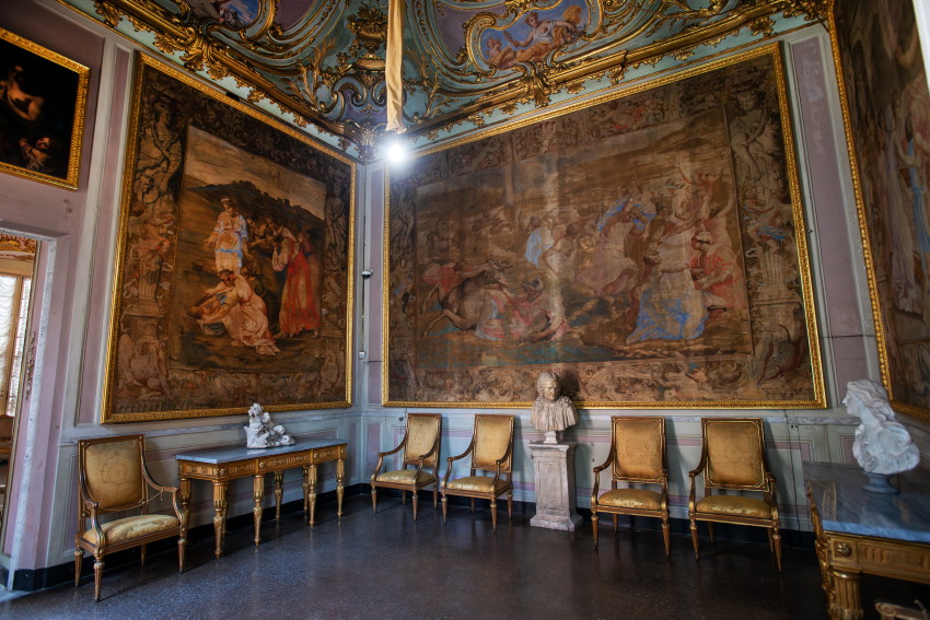Italien, Genua, 14.05.2025Der Palazzo Reale (Koenigspalast), der im 17. Jahrhundert von der Familie Balbi nach den Entwuerfen von Pier Francesco Cantone erbaut wurde. Da es in Genua kein Schloss gab kaufte der Koenig von Sardinien, Carlo Felice I., den Palast, der von seiner Groeße her den koeniglichen Anspruechen genuegte.Foto: der Battle Room, Raeume wie der Schlachtraum dienten im Wesentlichen der Repraesentation, d. h. der Zurschaustellung der besten Kunstsammlungen und Einrichtungsgegenstaende[Copyright by: Sepp Spiegl, Tel.: 0228 9483026, Fax.: 0228 9483027 {53129 Bonn, Moselweg 32, Deutsche Bank-Bonn, IBAN: DE66 3807 0059 0314 9671 01, BIC.: DEUTDEDK380]
