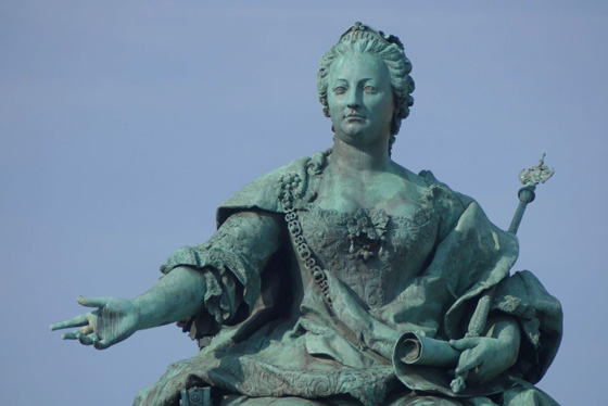Fast so wichtig wie sie selbst sind jedoch die Vertrauten auf dem Sockel des Denkmals, wobei besonders die Silhouetten von vier Feldherren hoch zu Ross die Aufmerksamkeit auf sich ziehen. Erst beim zweiten Blick, darauf verweist kenntnisreich Stadtführerin Kerstin Timmermann, werden ihre weiteren Berater und Vertrauten erkennbar, einschließlich des von ihr hoch geschätzten Leibarztes Gerard van Swieten.