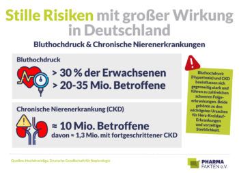 Bluthochdruck und die Chronische Nierenerkrankung (CKD) haben vieles gemeinsam. Beide sind medikamentös sehr gut beherrschbar. Beide werden in ihren Auswirkungen unterschätzt – vermutlich ein Grund dafür, dass zu viele der Betroffenen nicht gut eingestellt sind. Das macht beide Erkrankungen zu großen Kostentreibern im Gesundheitssystem. Eine Behandlung nach medizinischen Leitlinien würde mittelfristig einem milliardenschweren Konjunkturprogramm gleichkommen – vom unnötigen Leid einmal abgesehen, das verhindert werden könnte. Doch davon sind wir weit entfernt.