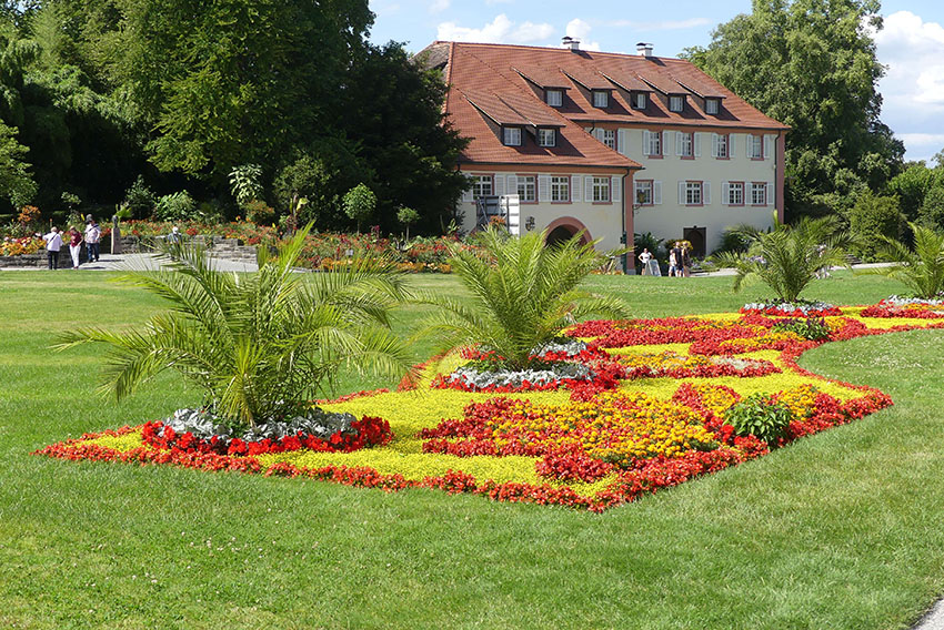Geprägt von unverwechselbarer Atmosphäre zeigt sich auch die nahe gelegene Blumeninsel Mainau. Mit ihrem mediterranen Klima bringt sie wahre florale Wunderwerke hervor. Besonders der Schlossgarten ist übervoll davon und ruft mit seiner Üppigkeit Bewunderung hervor. Ein großzügig angelegter Rosengarten und eine von Licht durchflutete Palmenhalle tragen zu diesem außergewöhnlichen mediterranen Vergnügen bei.