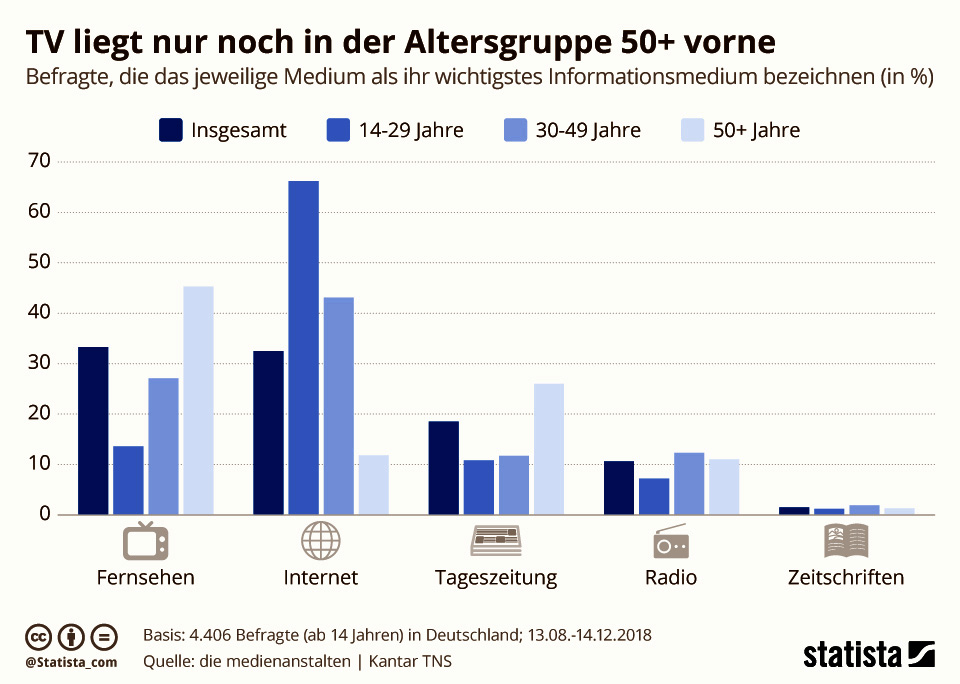 TV liegt nur noch in der Altersgruppe 50+ vorne