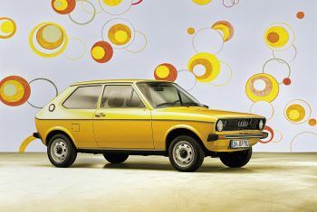 Er kommt genau zur richtigen Zeit: Mit dem Audi 50 geht 1974 unmittelbar nach der Ölpreiskrise von 1973 der erste Kleinwagen eines deutschen Herstellers an den Start. Er ist sparsam im Verbrauch, seine Konzeption ist wegweisend:
