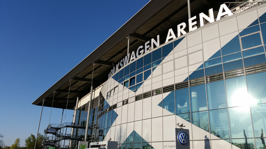 In Wolfsburg findet sich jeder schnell zurecht. Auf der einen Seite des Mittellandkanals und der Bahnstrecke von Hannover nach Berlin breitet sich das riesige VW-Werk aus. Nur wenige hundert Meter entfernt findet sich die sogenannte Autostadt, eine Mischung aus Automuseum, seriösem Autovergnügungspark sowie der Erlebniswelt, in der VW-Käufer ihre Neuwagen abholen. Komplettiert wird dieses Automobilmekka von einem Luxus-Hotel, dessen Restaurant mit drei Michelin-Sternen dekoriert ist und der ansehnlichen Volkswagen-Arena. Das gegenüberliegende Ufer wird vom Hauptbahnhof, einem Outlet-Center, einem interaktiven Wissenschaftsmuseum im dekonstruktivistischen Betongebäude und der sich daran anschließenden Innenstadt geziert. Diese kompakte Anordnung ist an Bundesligaspieltagen eine große Herausforderung für die Ordnungskräfte. Viele Mitarbeiter des VW-Sicherheitsdienstes sind aufgeboten, um Besucher der Autostadt von den Fußballfanhängern und diese wiederum in Wolfsburg- und Gästefans zu trennen. Direkt vor der Arena verhindern Polizisten, dass sich ahnungslose Fußballzuschauer in für sie verbotene Bereiche verlaufen. Da kann schon eine falsche Schal- oder Mützenfarbe zu einem unüberwindlichen Hindernis werden. Weil heute Eintracht Frankfurt mit den Vereinsfarben Schwarz, Weiß und Rot zu Gast ist, wird mein schwarzer Stadionmantel zum Problem. Erst nach energischer Diskussion und trotzigem Vorweisen meiner Eintrittskarte kann ich zwei Polizisten davon überzeugen, zu Recht auf dem Weg zum Wolfsburger Tribünenbereich zu sein. Endlich habe ich mich zum richtigen Stadioneingang durchgekämpft. Ein kleines Schild erinnert daran, dass im Stadion nur bargeldloses Bezahlen mit einer Arenakarte möglich sei. Diese Bezahlkarte muss an einer der ganz wenigen geöffneten Servicekassen erworben werden. Ein Geduldsspiel beginnt. Ich reihe mich in die lange Schlange vor den wenigen Schaltern ein. Die bemitleidenswerten Servicemitarbeiter sind mit der Fülle ihrer Aufgaben völlig überfordert. Sie müssen nicht nur Bezahlkarten ausgeben sondern auch Jugend- in Erwachsenentickets und Steh- in Sitzplätze umtauschen sowie noch verfügbare Karten an kurzentschlossene Besucher verkaufen. Endlich kann ich meinen Wunsch vorbringen. Als Alternative zur nachgefragten Bezahlkarte wird mir überraschend die eigene Geldkarte empfohlen. Mein Angebot, dann doch lieber mit meiner Handy-App zu bezahlen, stößt auf Unverständnis und eisige Ablehnung. Beim Bezahlen ist VW in seiner Arena mit der Software offensichtlich nicht auf der Höhe der Zeit. Immerhin gibt es eine Entschuldigung für das lange Warten. Nach Spielende wiederholt sich die zähe Prozedur. Immer noch sind zu wenige Kassen geöffnet und es dauert wieder fast 30 Minuten bis die Bezahlkarte zurückgegeben sowie Pfand und Restguthaben ausgezahlt werden. Als Gast hat man in Wolfsburg sehr viel Geduld mitzubringen.